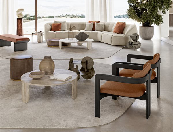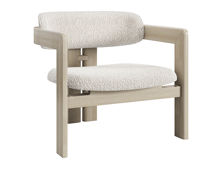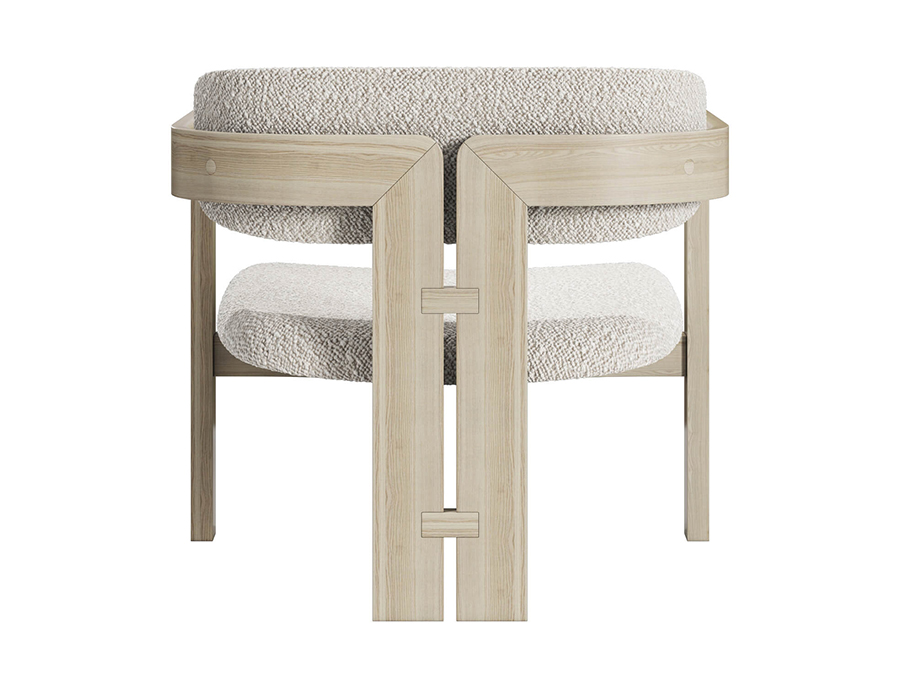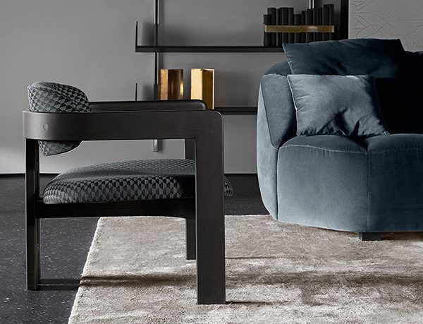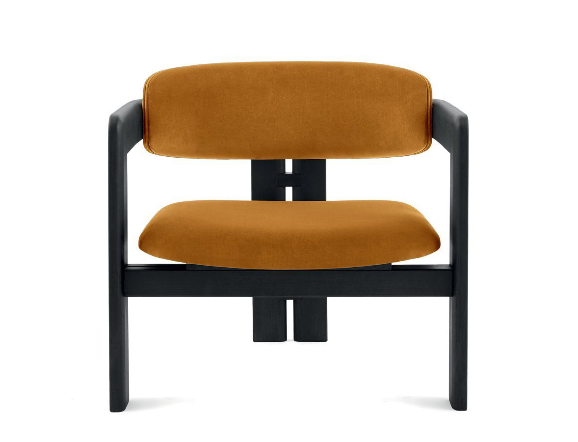 Armchair with black open pore stained solid curved structure.