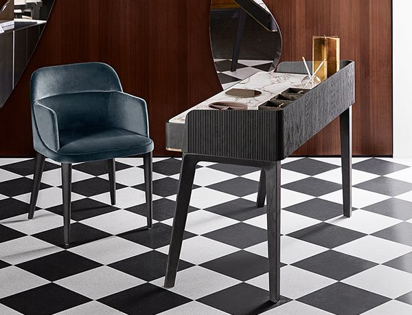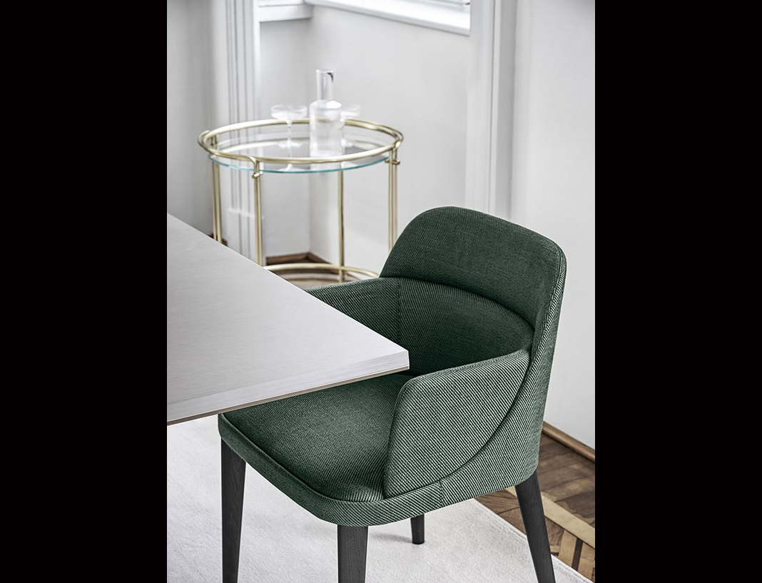 Upholstered chair with inside structure in wood and by-products. Padded with non-deformable polyurethane foam in different density and polyester fibre.