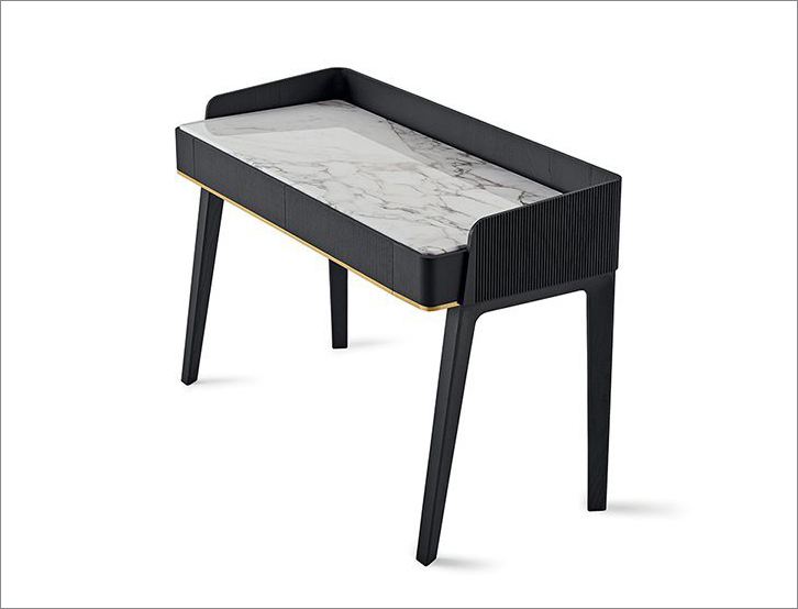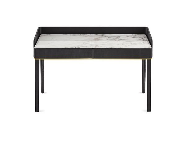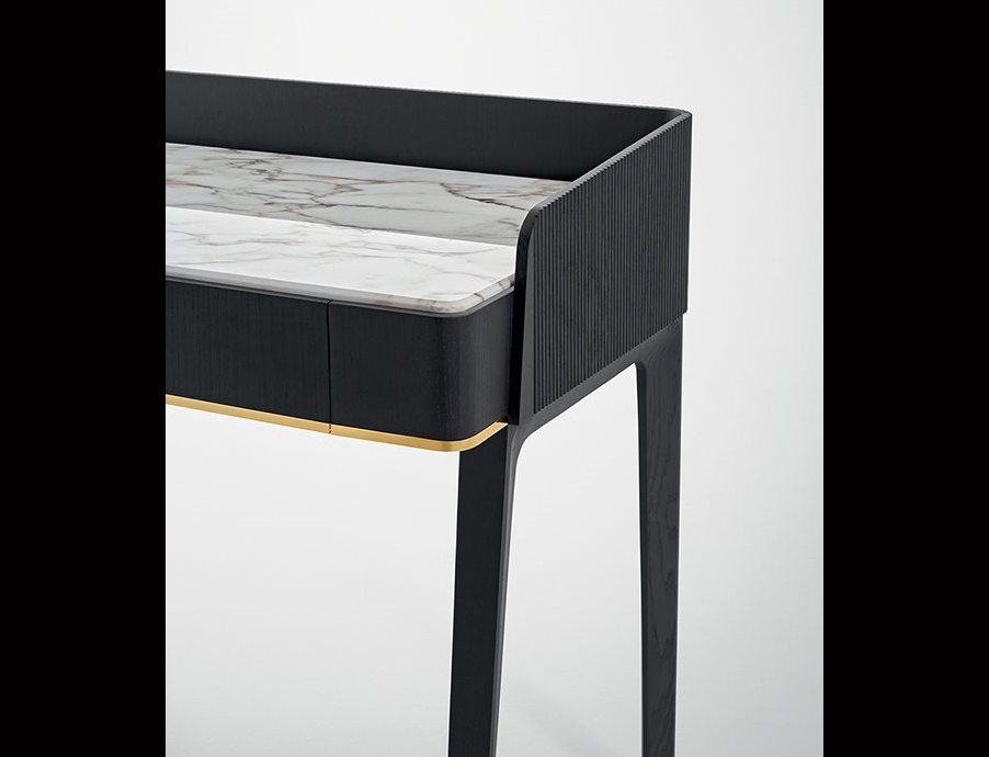 Desk in black open pore stained solid ash with hand-knurled sides.