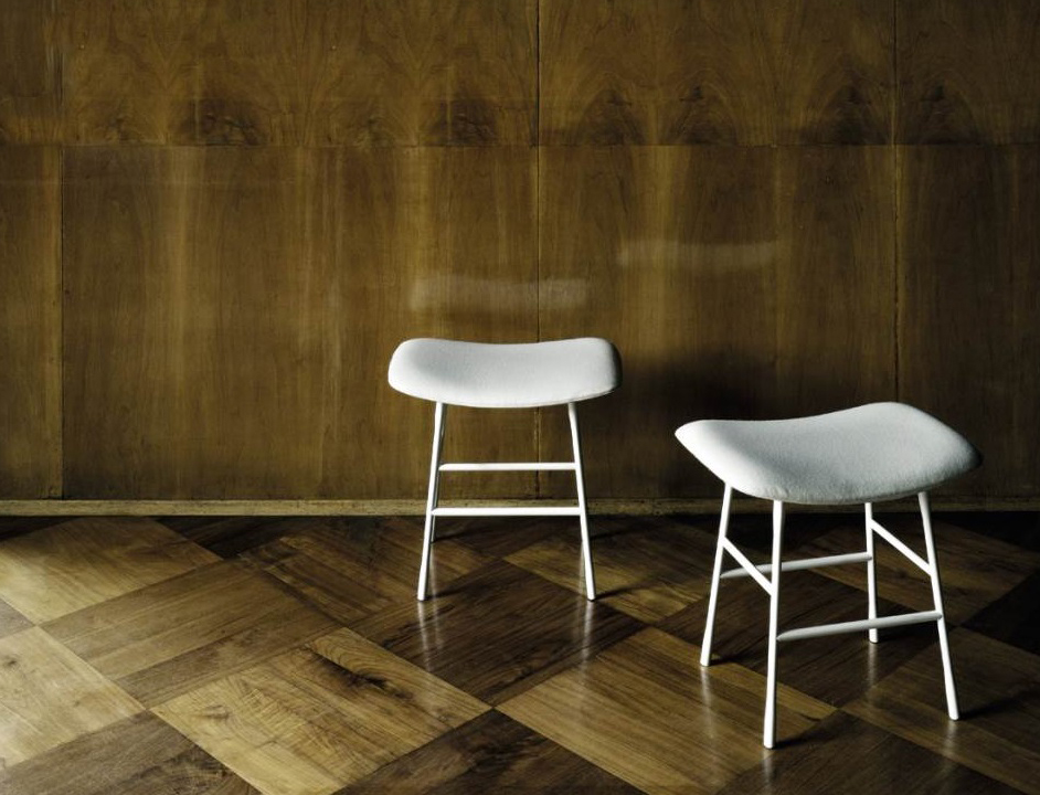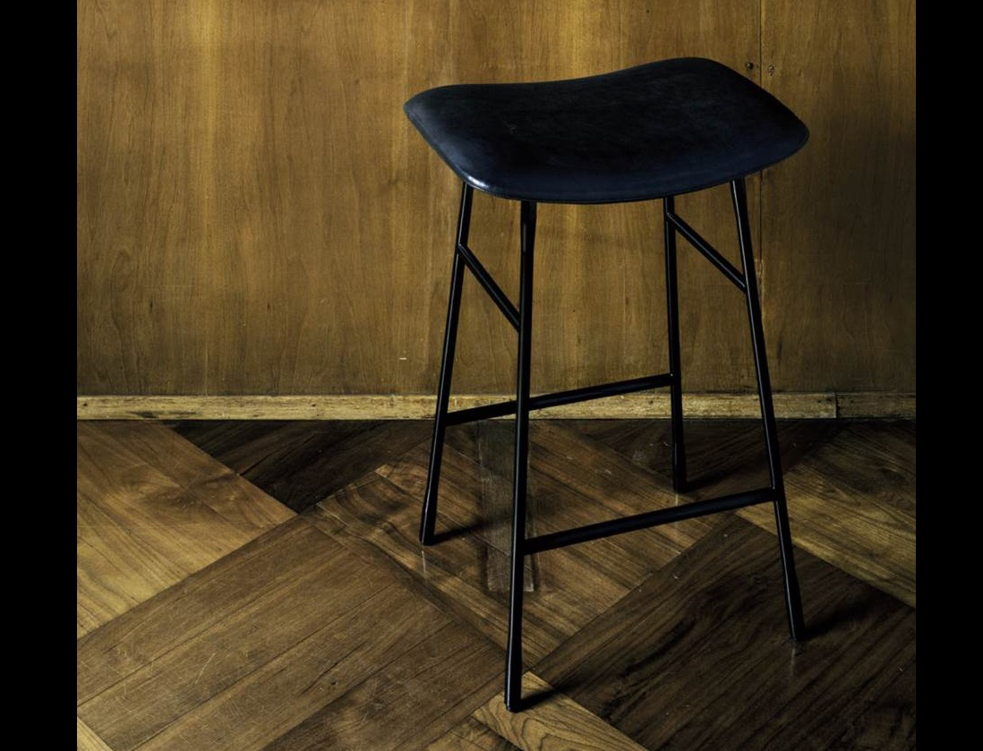 Discreet elegance and comfort for Hinge, stool available in two heights.