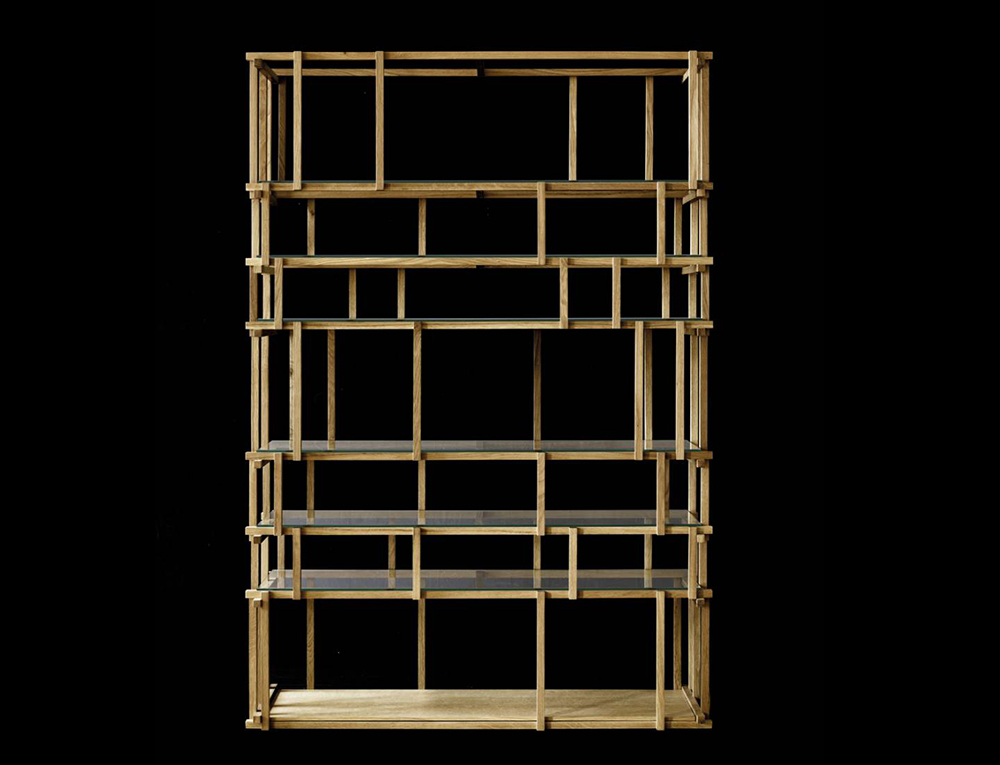 Off Cut is a bookcase designed by assembling interlocking laths of solid wood, made from off-cuts of other pieces of furniture.