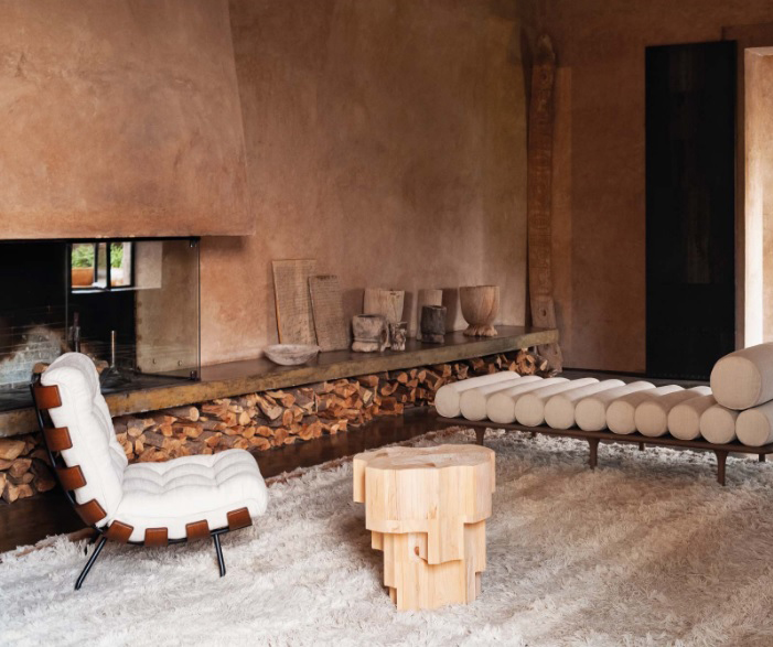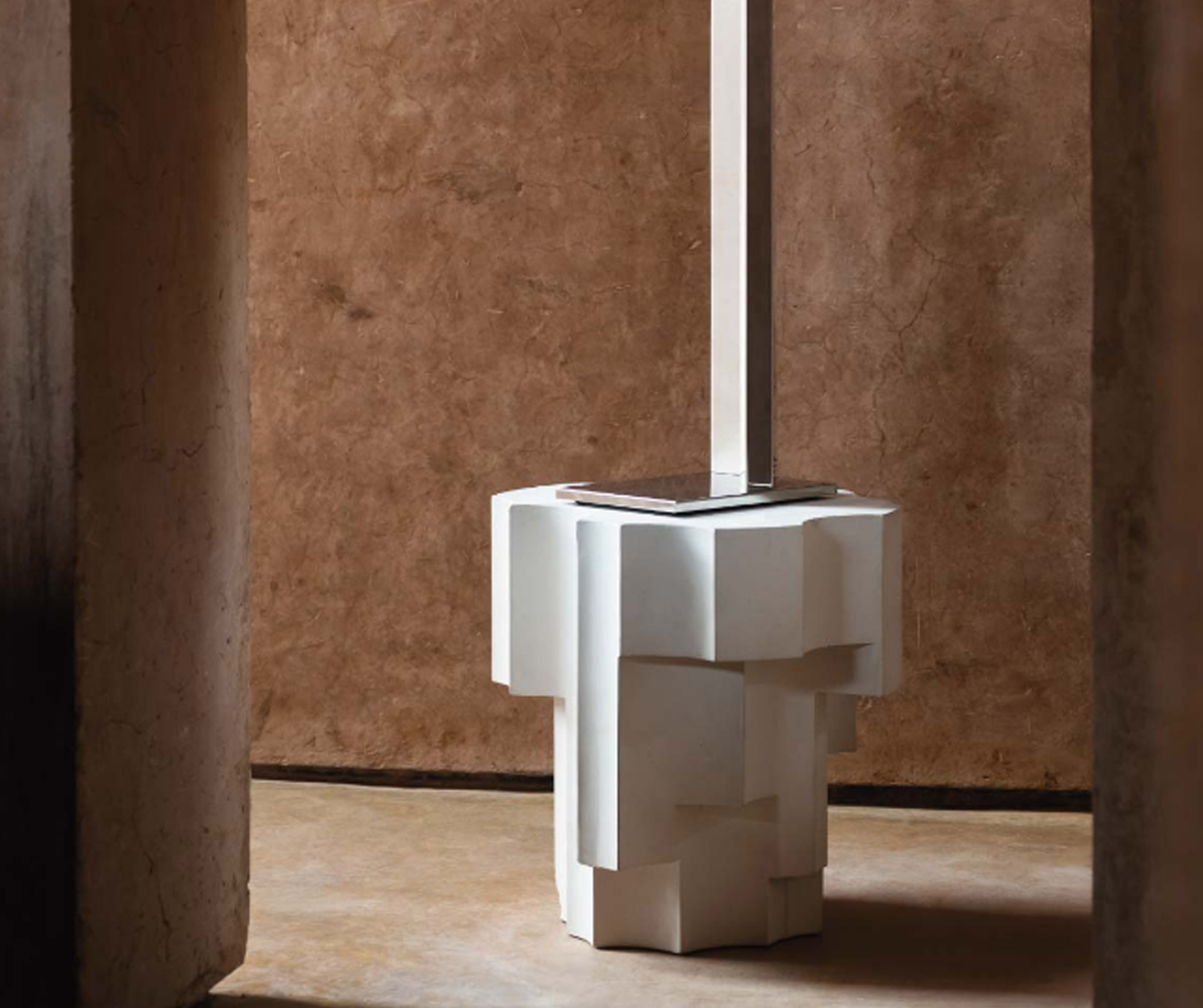 Meticulous craftsmanship leaves marks and trajectories in the flat and pristine surfaces, while the senses are attracted by the recovery of natural materials and the unprecedented sensory contrasts that derive from them. Inspired by pre-Hispanic altars, these low tables, which are declinable in a wide range of finishes: ceramic, concrete and cedar wood.