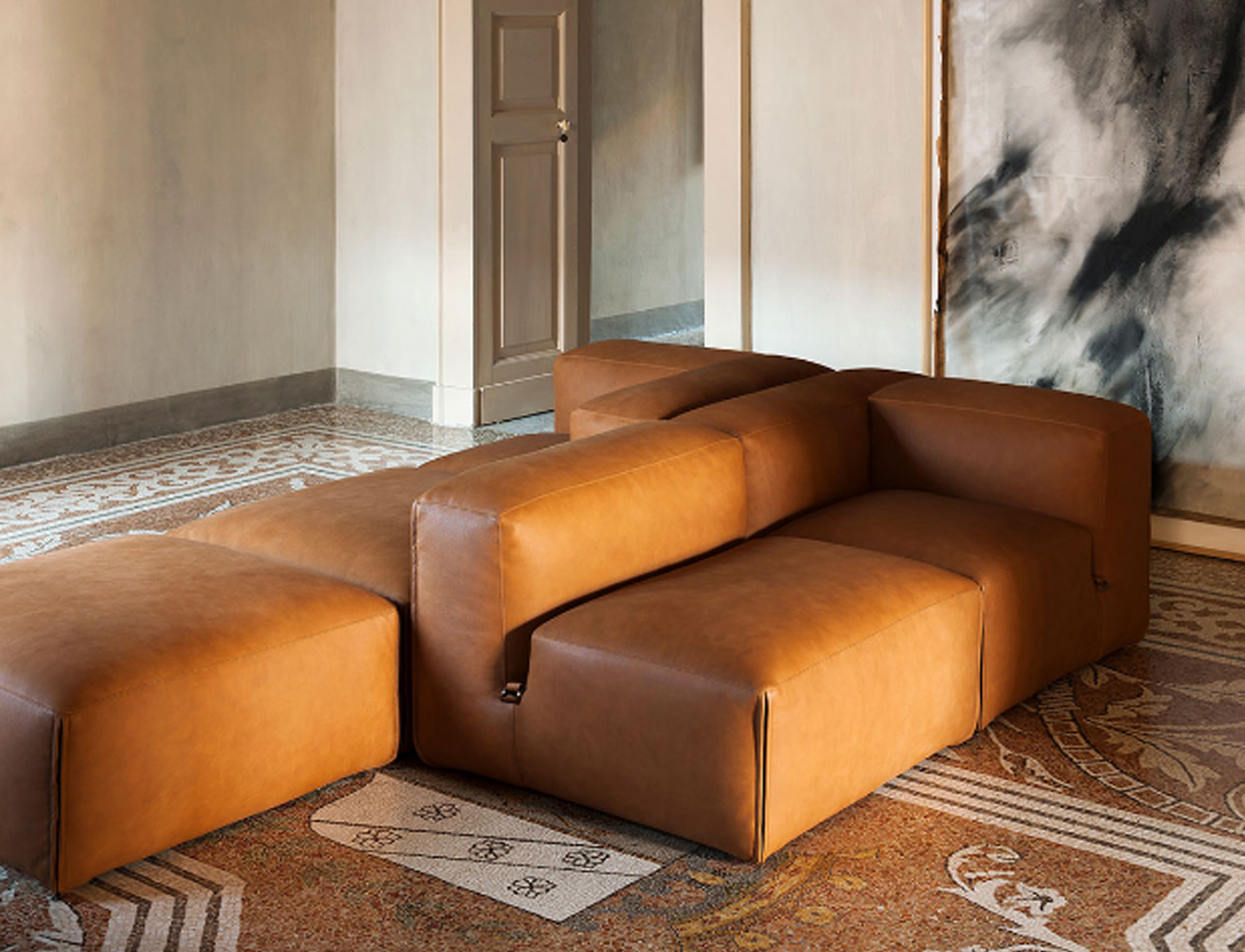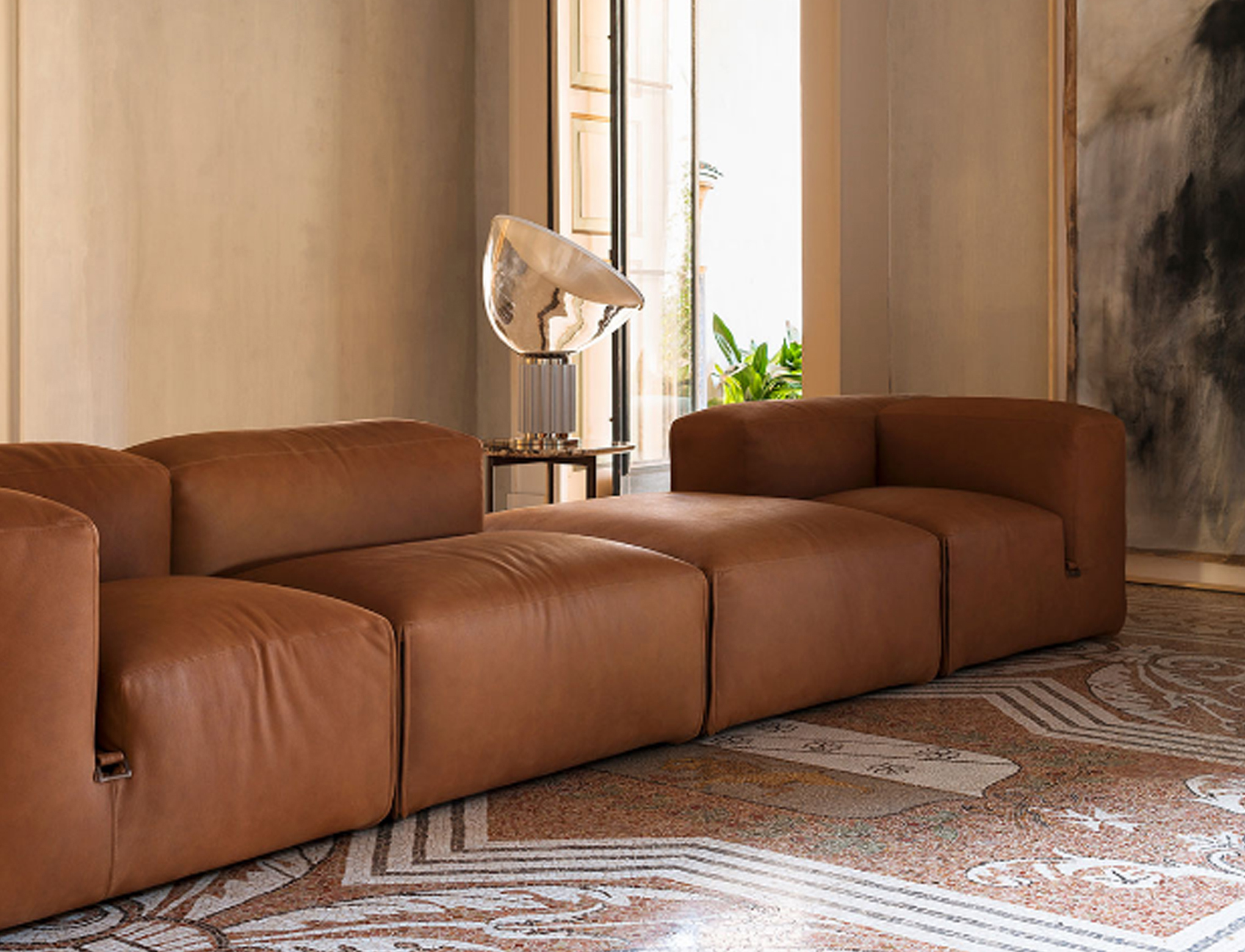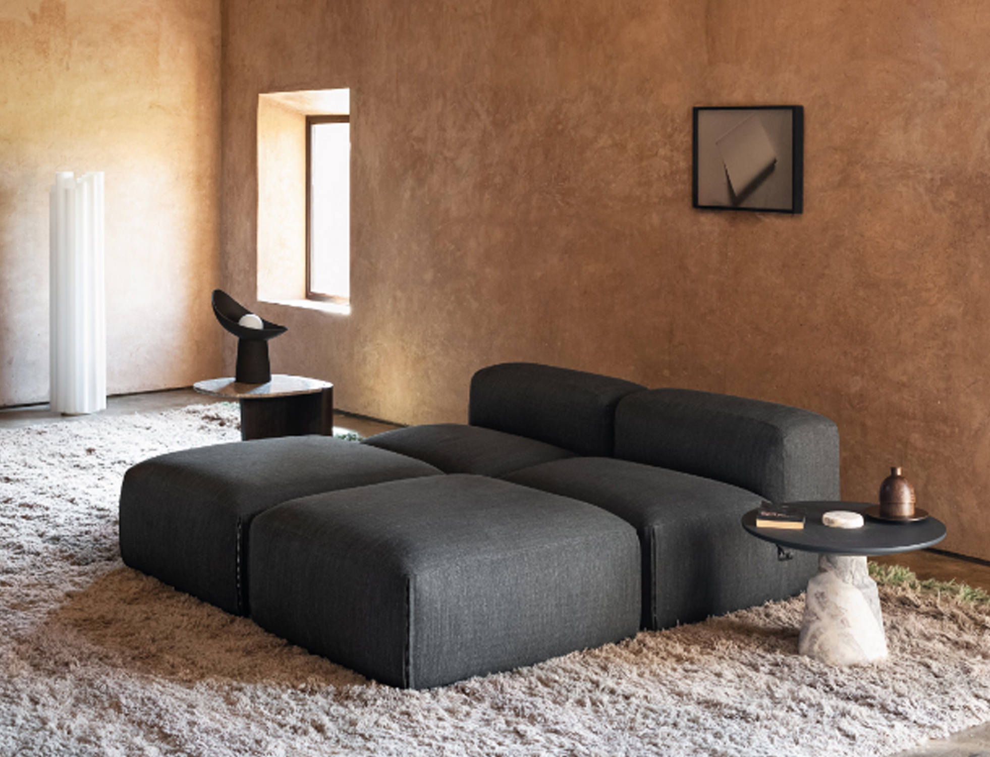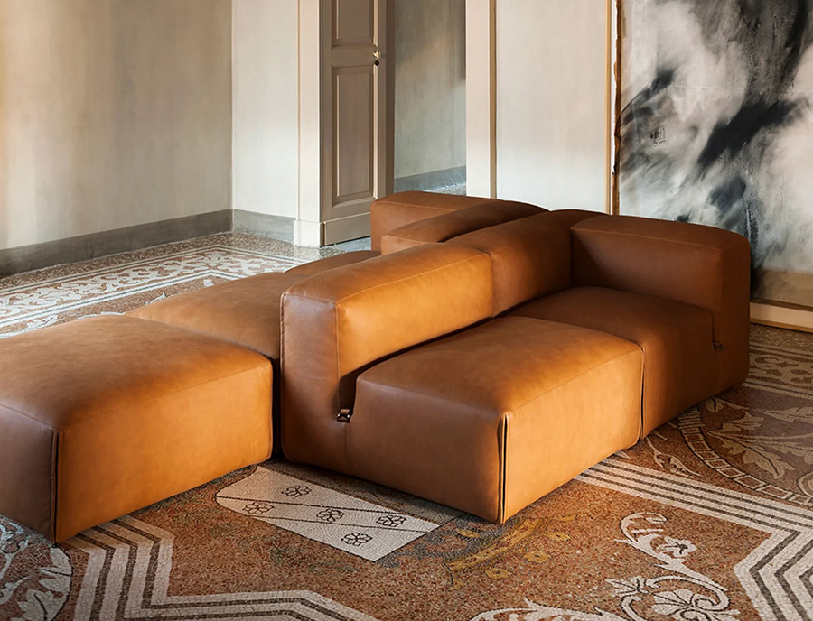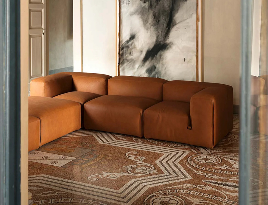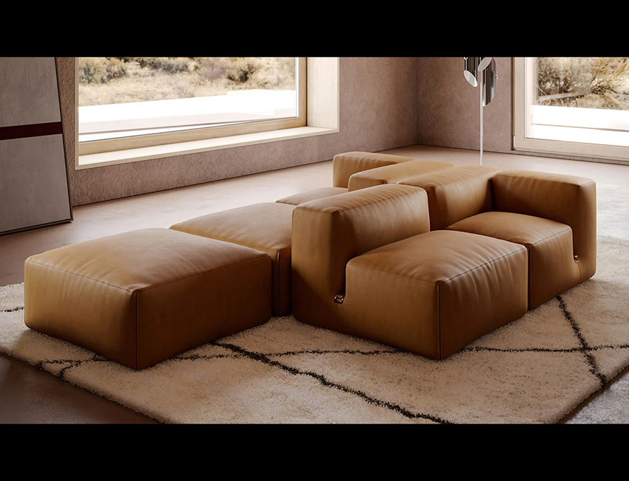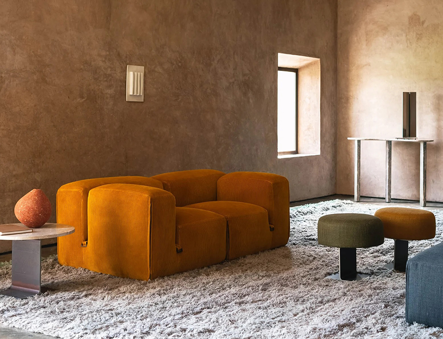 The theme of modularity is central, and is already expressed by the name chosen for this sofa system: just as the large boulders that made up the imposing Roman walls, the seating elements come together in the design in a theoretically infinite process. This way, the sofa lends itself to small but also very large environments, without ever losing its stylistic aspect.