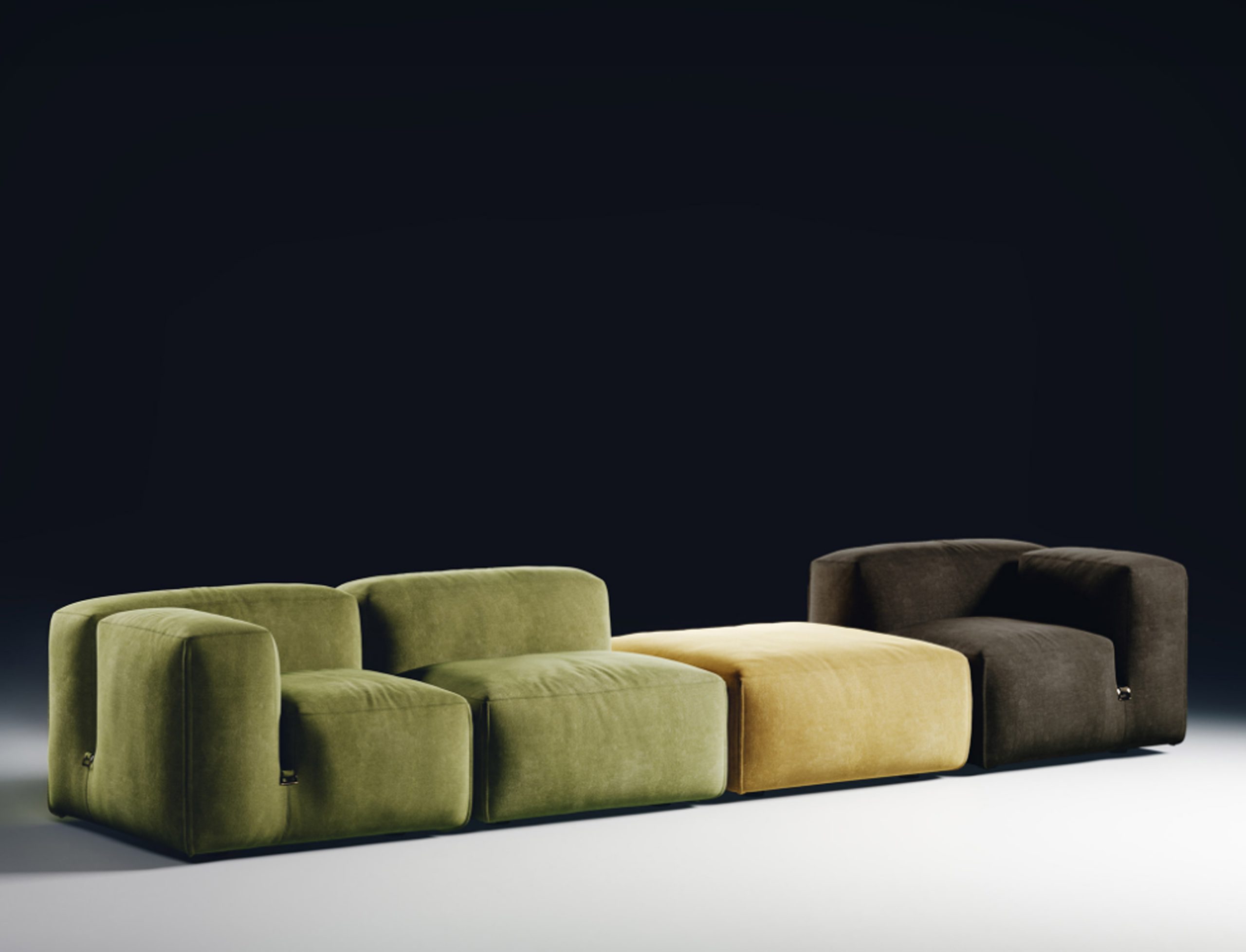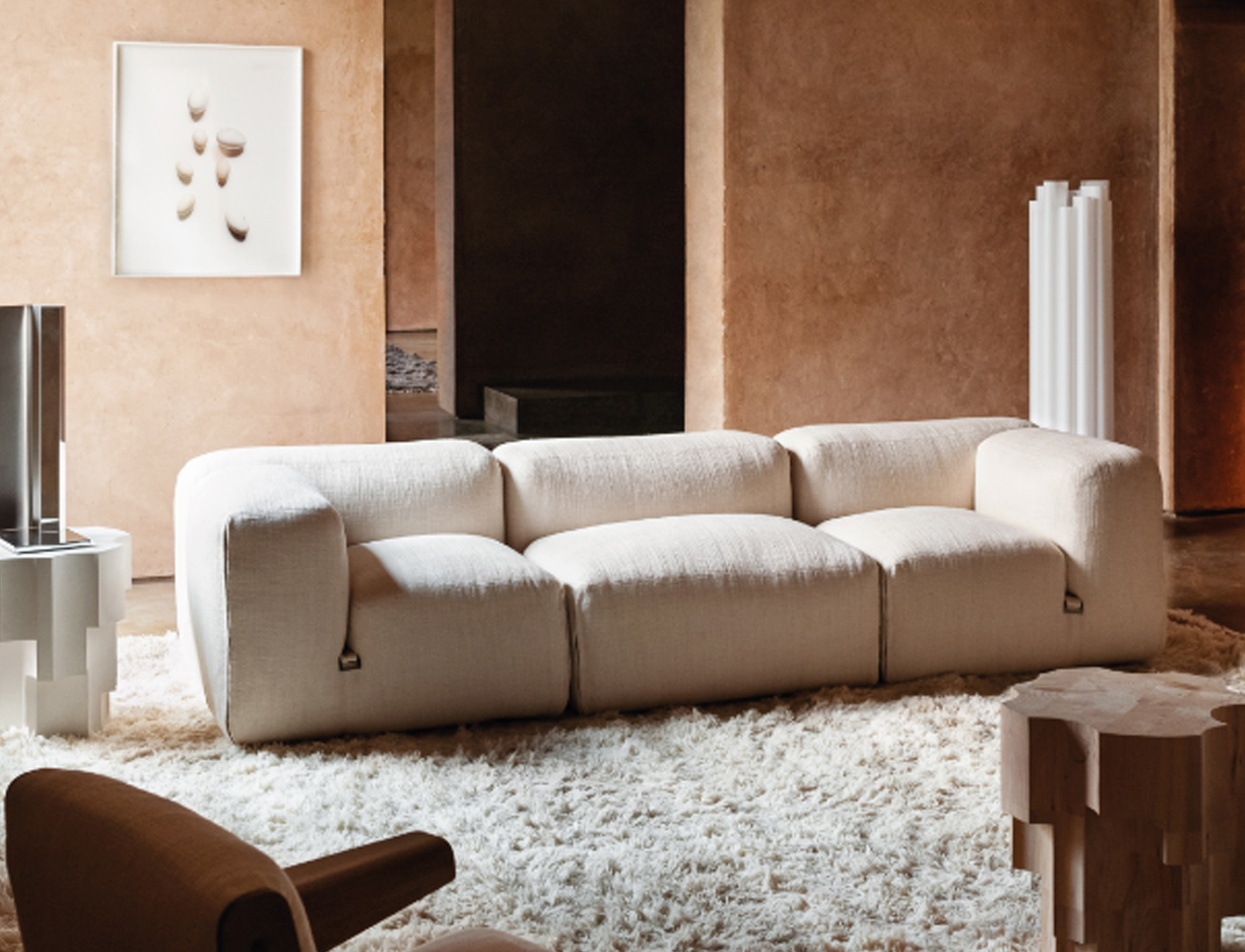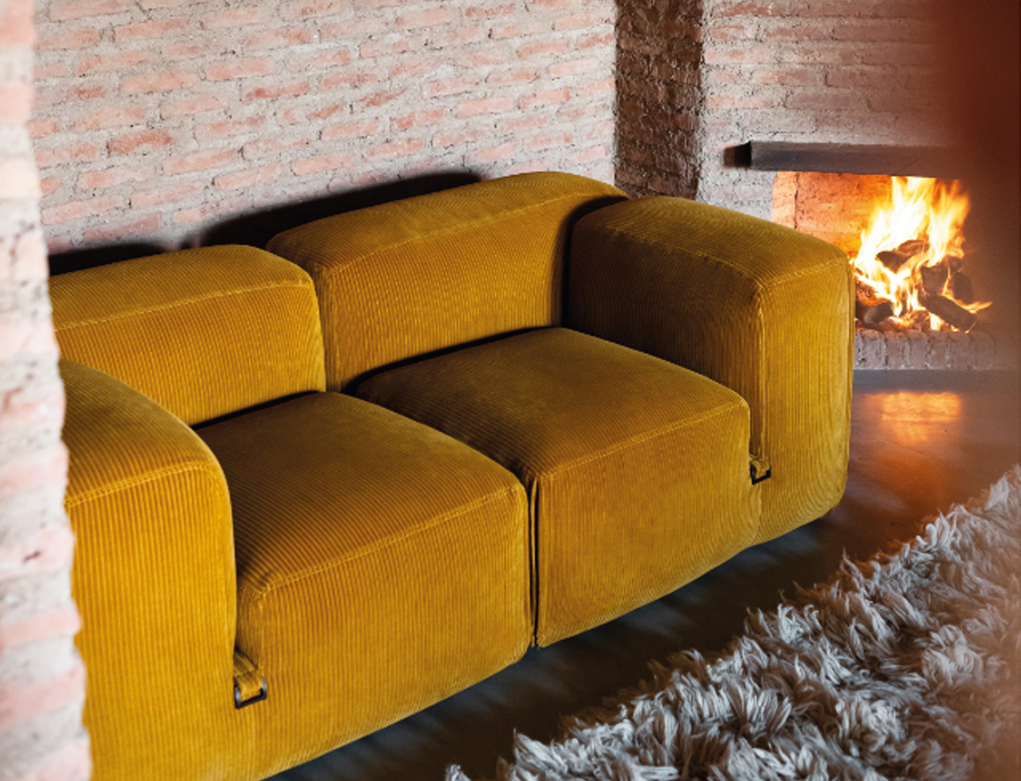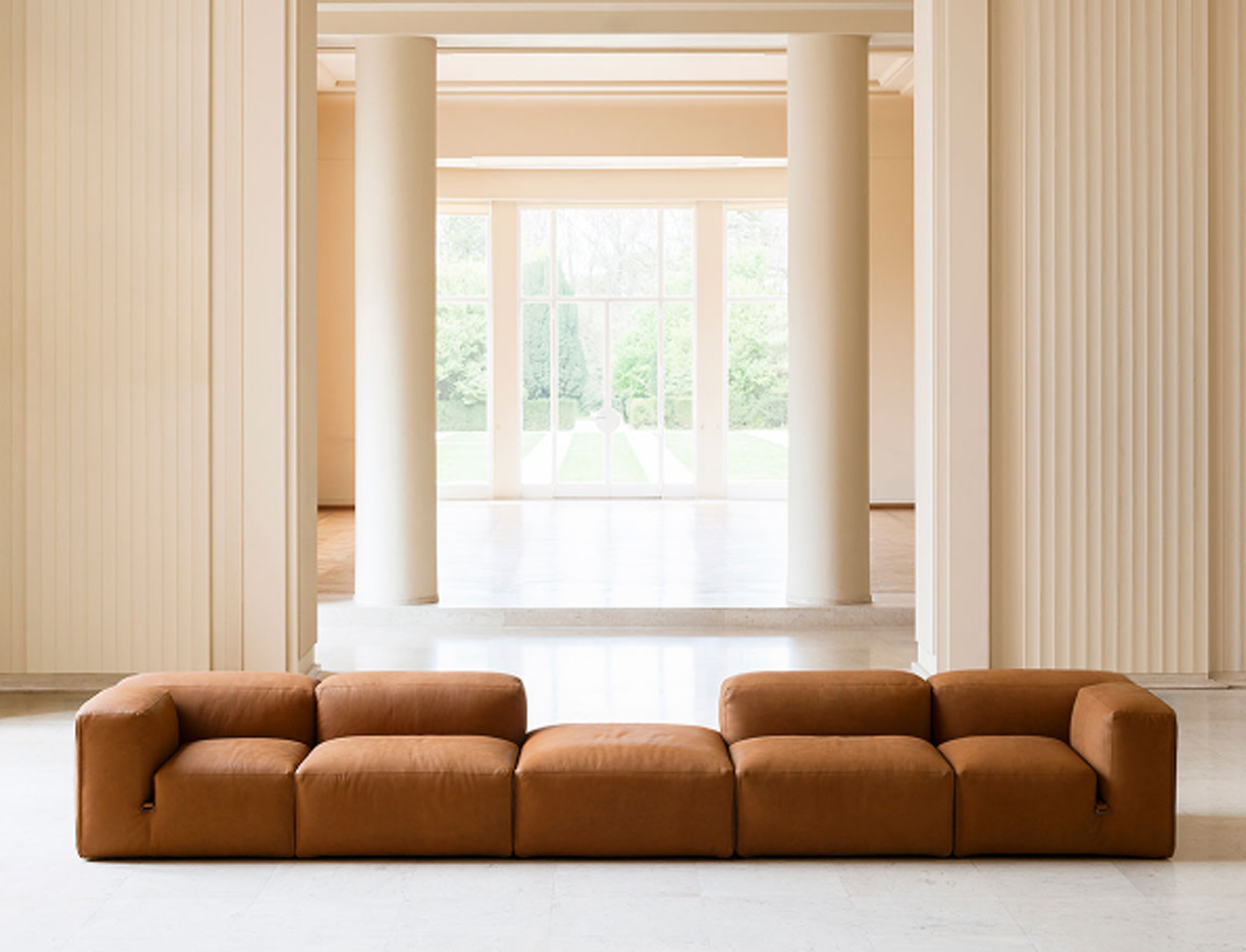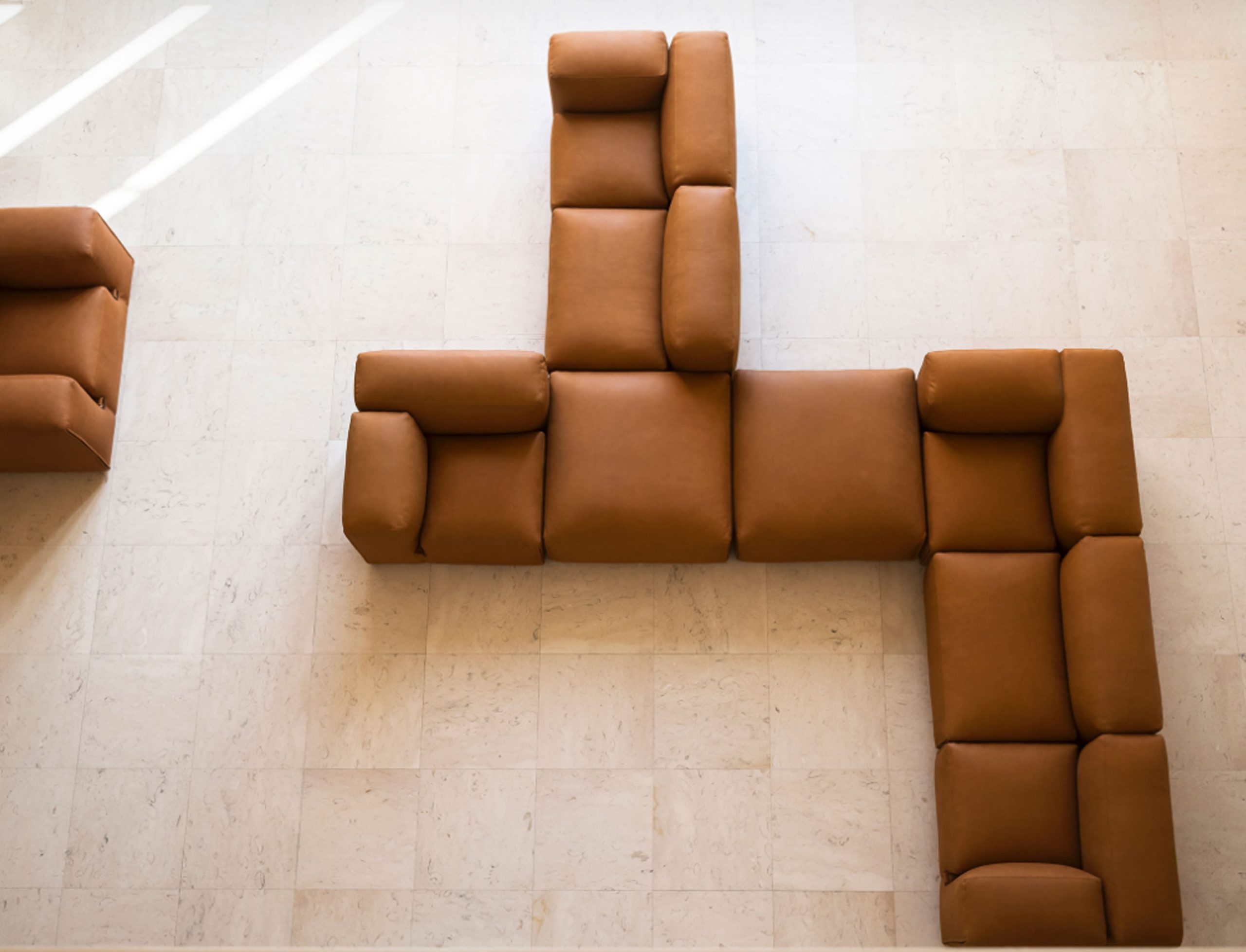 The theme of modularity is central, and is already expressed by the name chosen for this sofa system: just as the large boulders that made up the imposing Roman walls, the seating elements come together in the design in a theoretically infinite process. This way, the sofa lends itself to small but also very large environments, without ever losing its stylistic aspect.