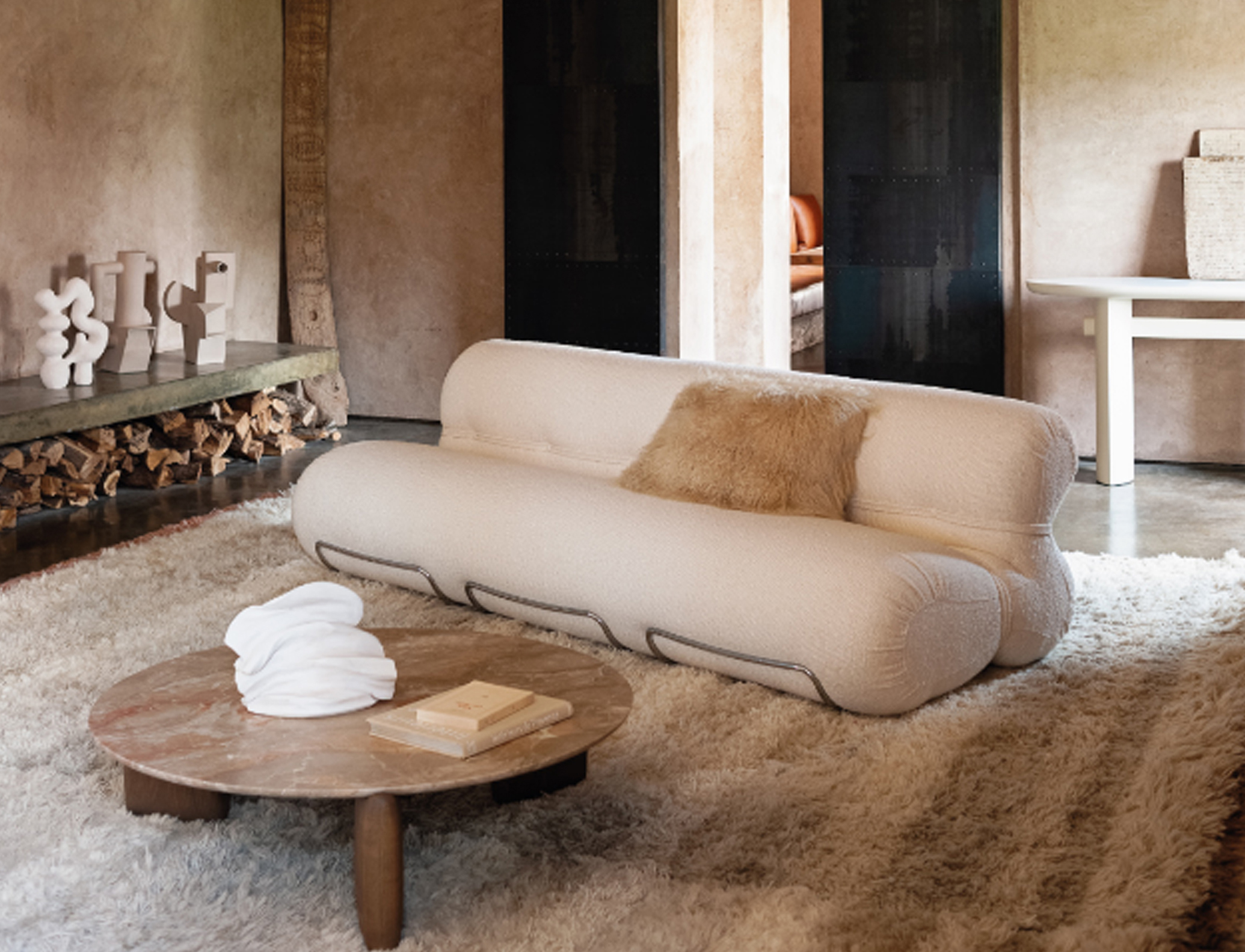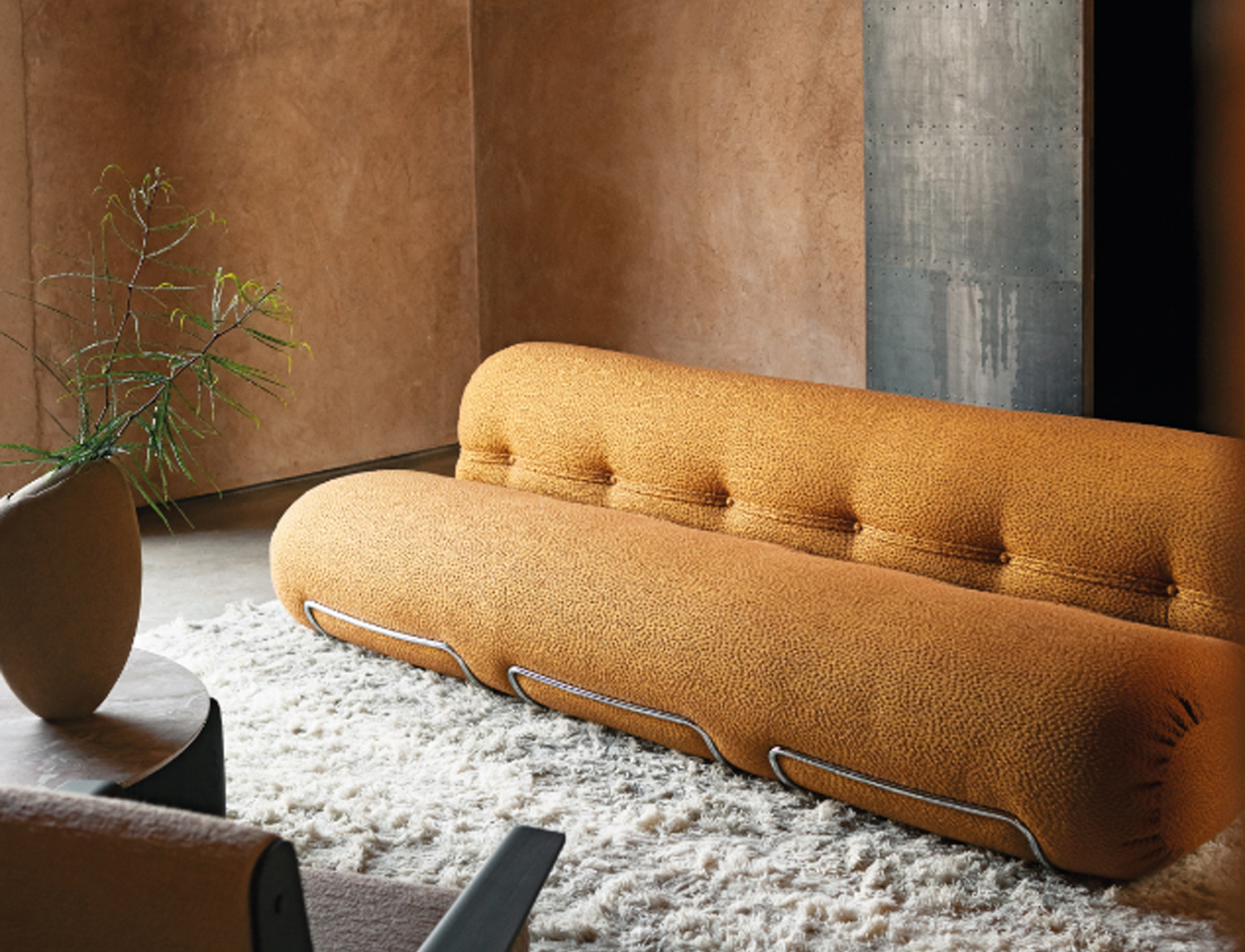 The sofa and armchairs are handcrafted by master upholsterers just like they were fifty years ago — using revisited and up-to-date techniques.