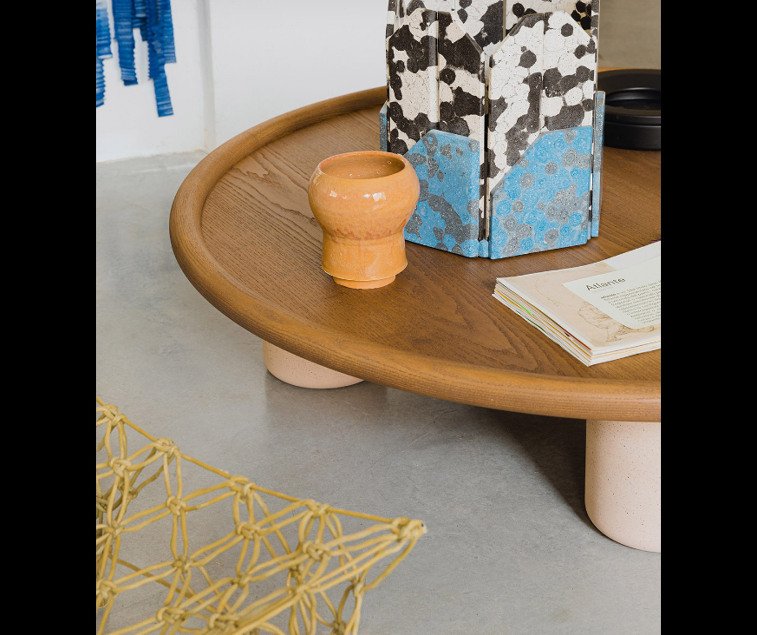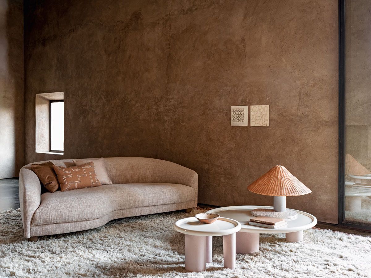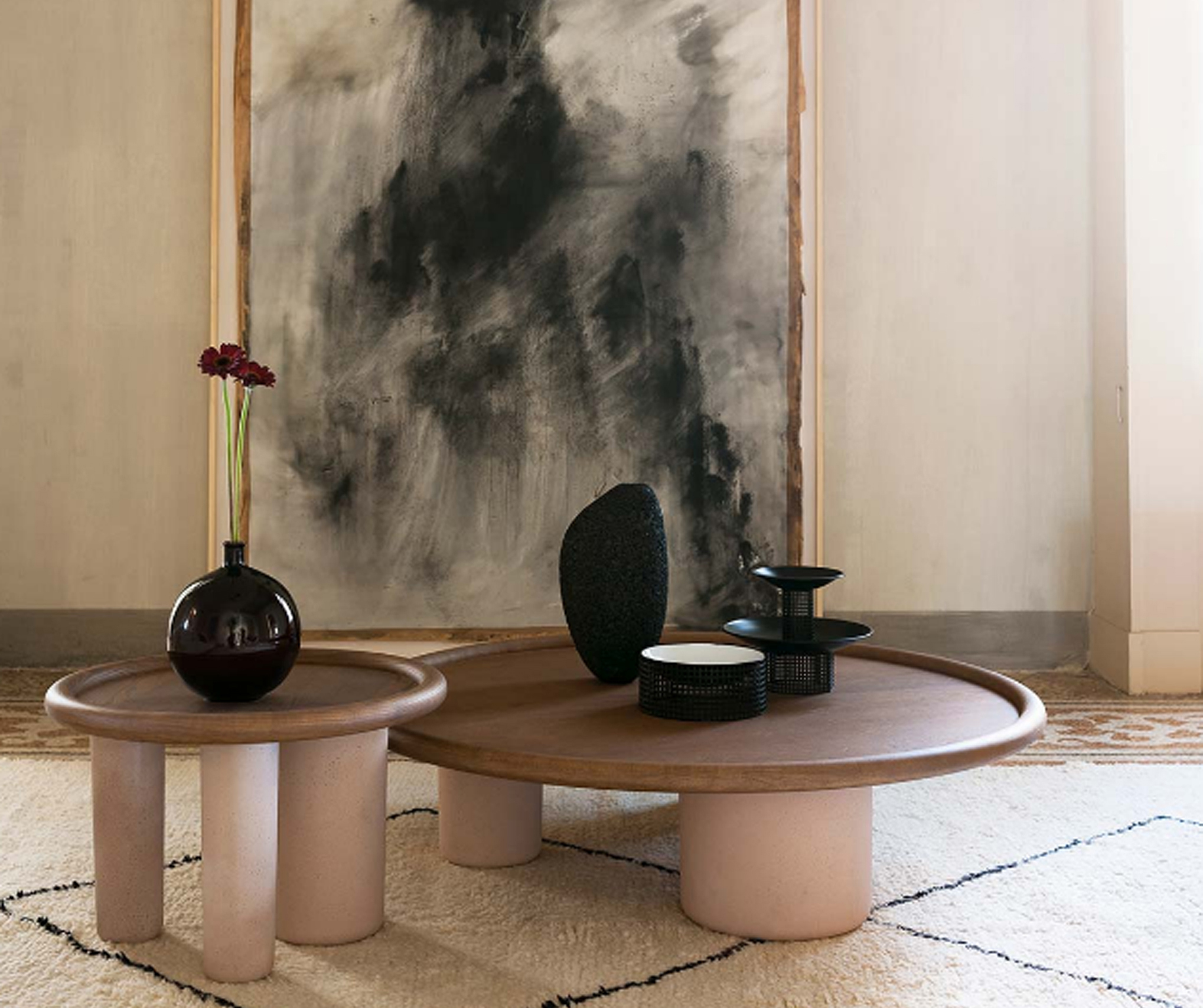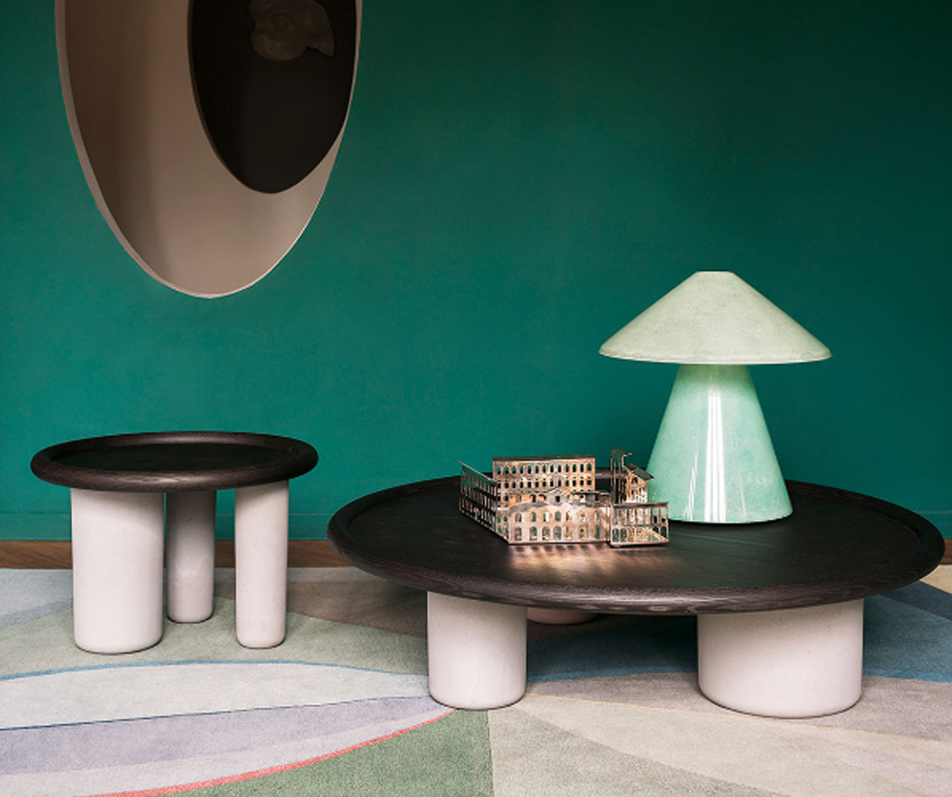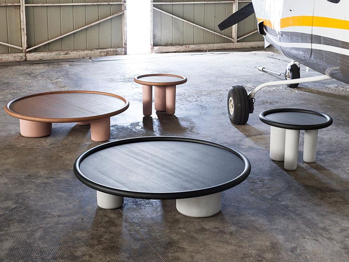 The Pluto coffee tables are essentially sculptural shapes and bold details that call to mind cubism.