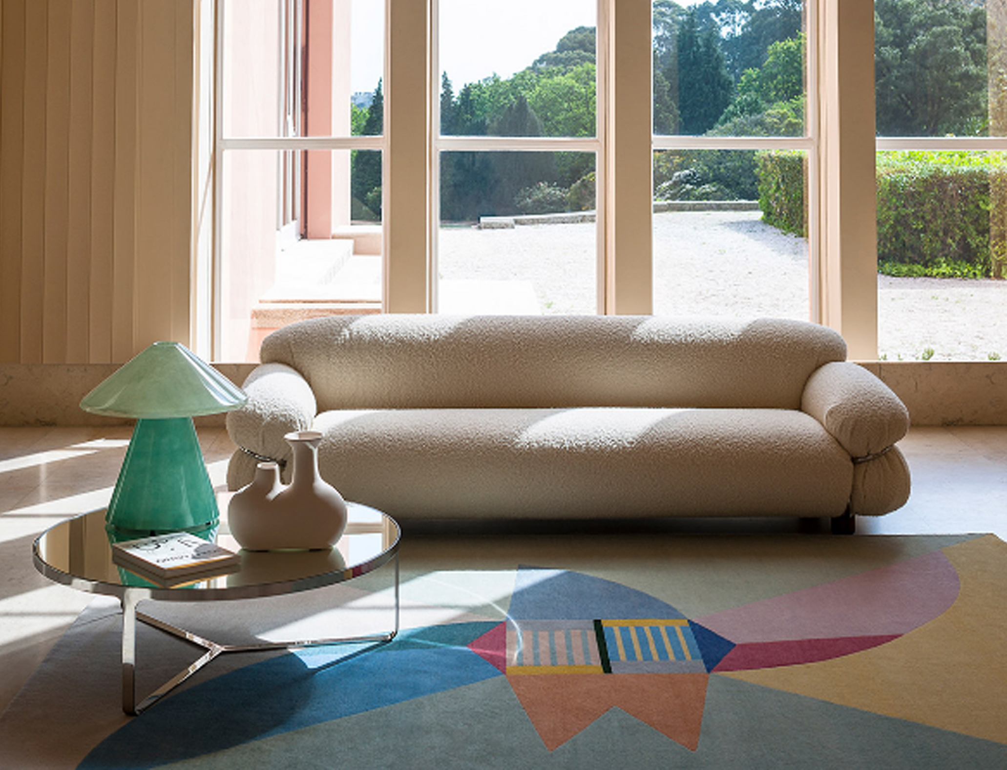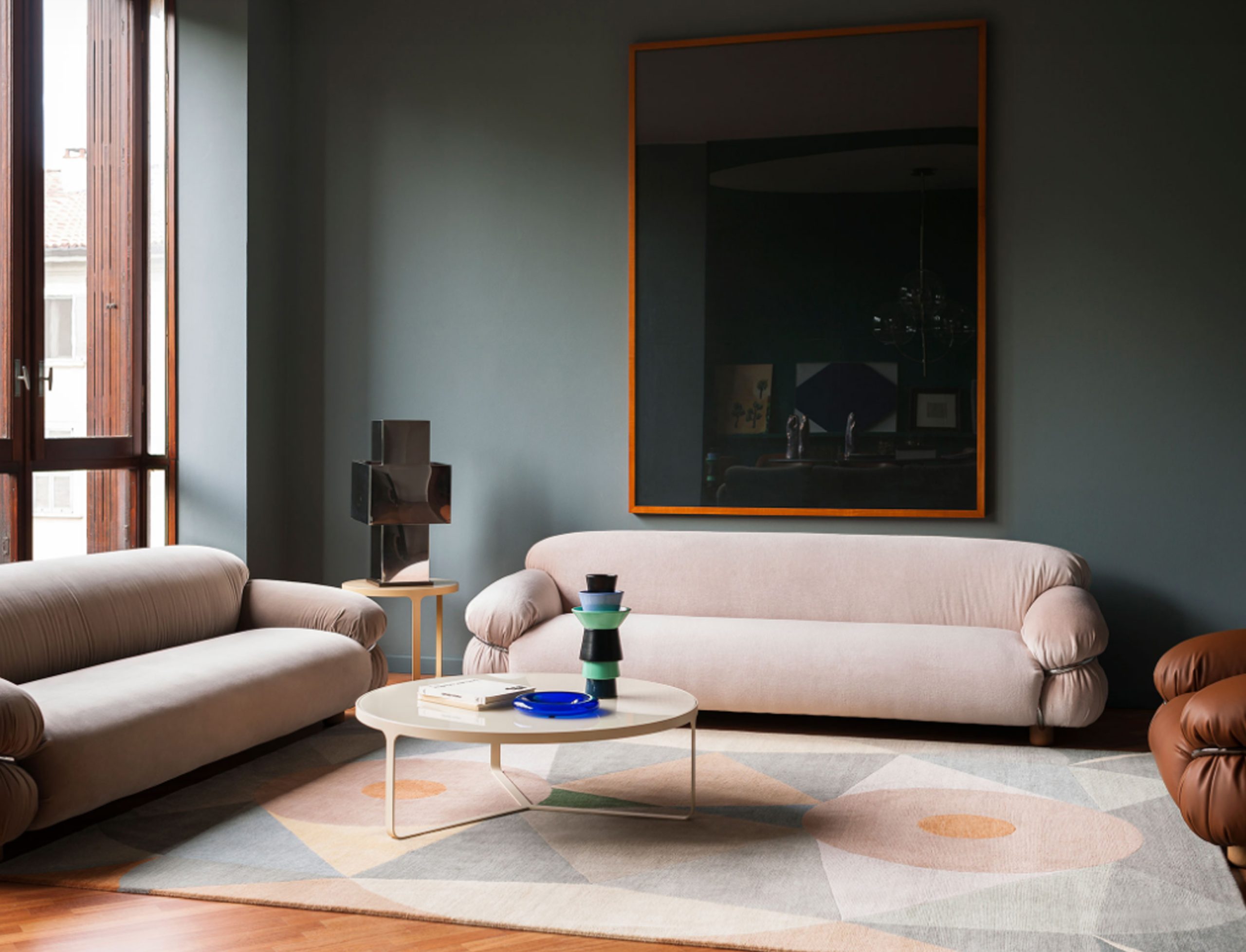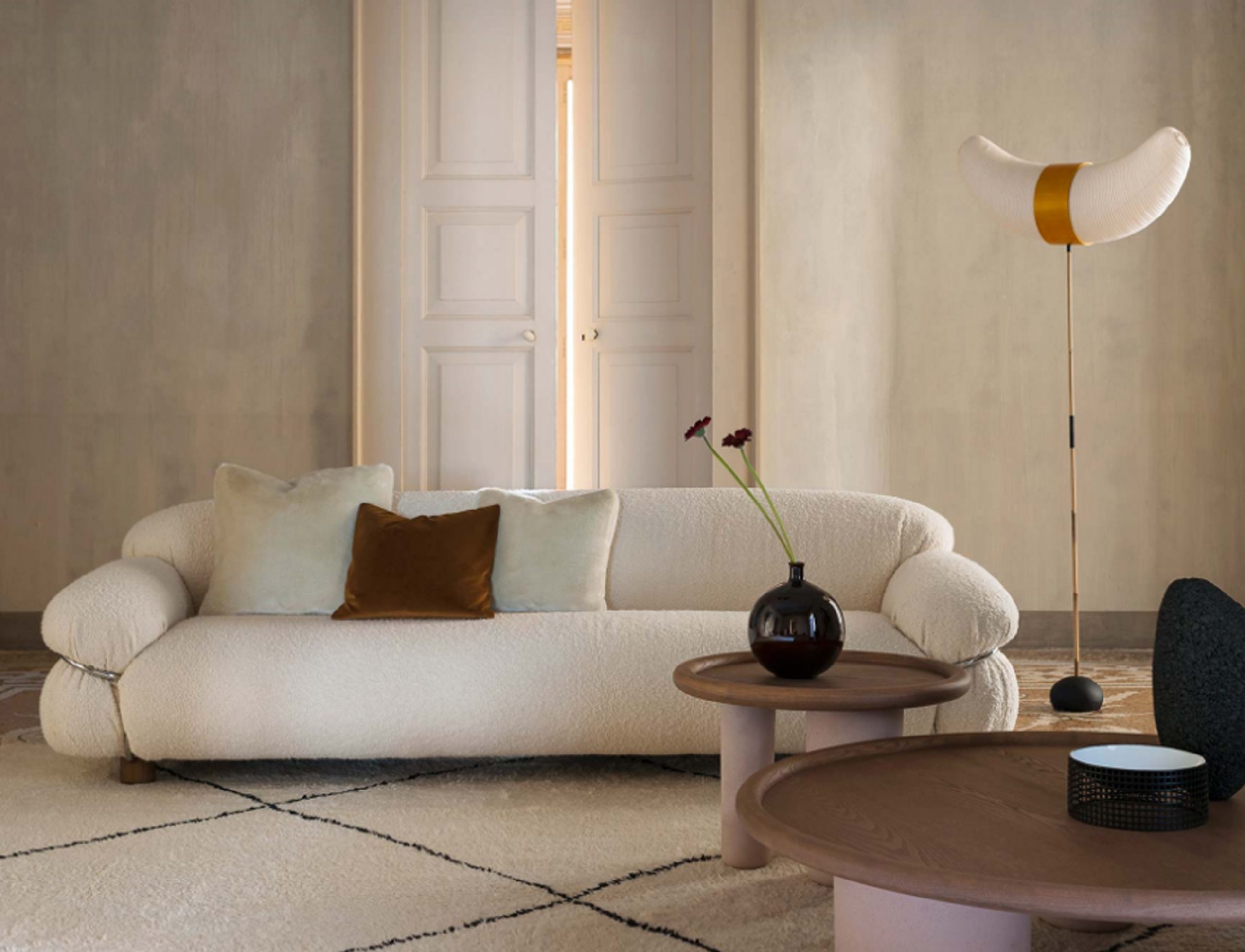 Sesann is reborn in new dimensions to offer greater comfort and sensuality with a deep and welcoming seat that further enhances the important volumes of this historic sofa.