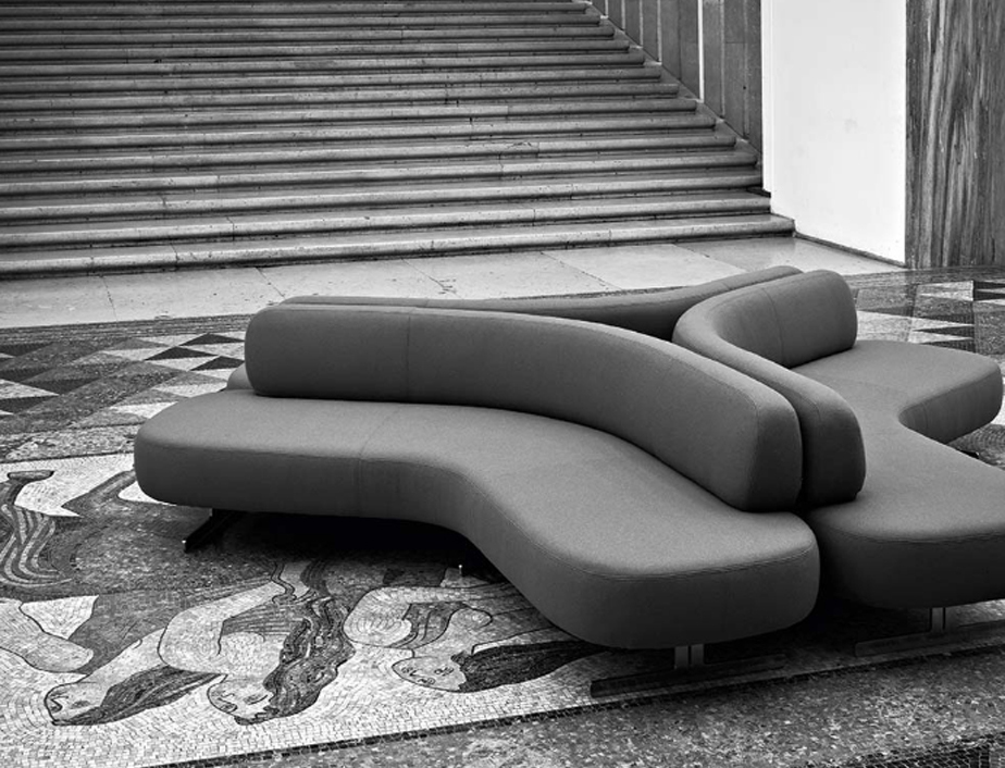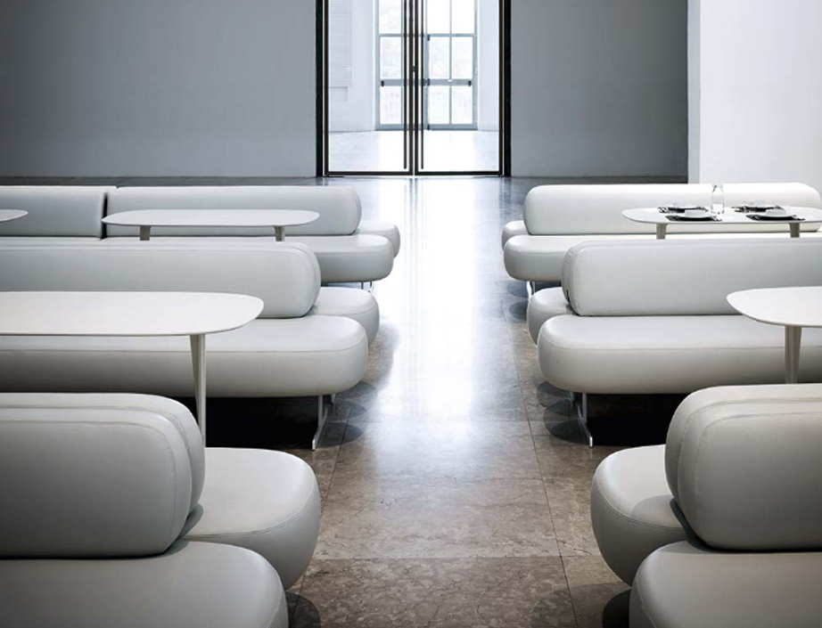Stone is a modular sofa system crafted to unfold infinite possibilities of arrangement with dramatic aesthetic impact, catering to public and contract spaces of all different sizes.